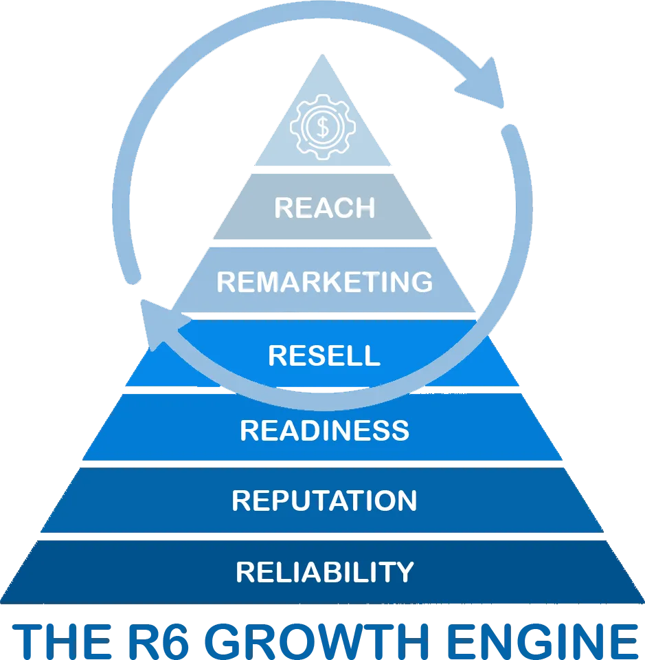 Our free audit questionnaire takes you through the first 4 foundational elements of the R6 Growth Engine. You'll gain a better understanding of how you're performing in the critical areas of Reliability, Reputation, Readiness, and Reselling or Retention. We recommend taking the self-audit prior to your free strategy call, so we can better evaluate your business and marketing needs.